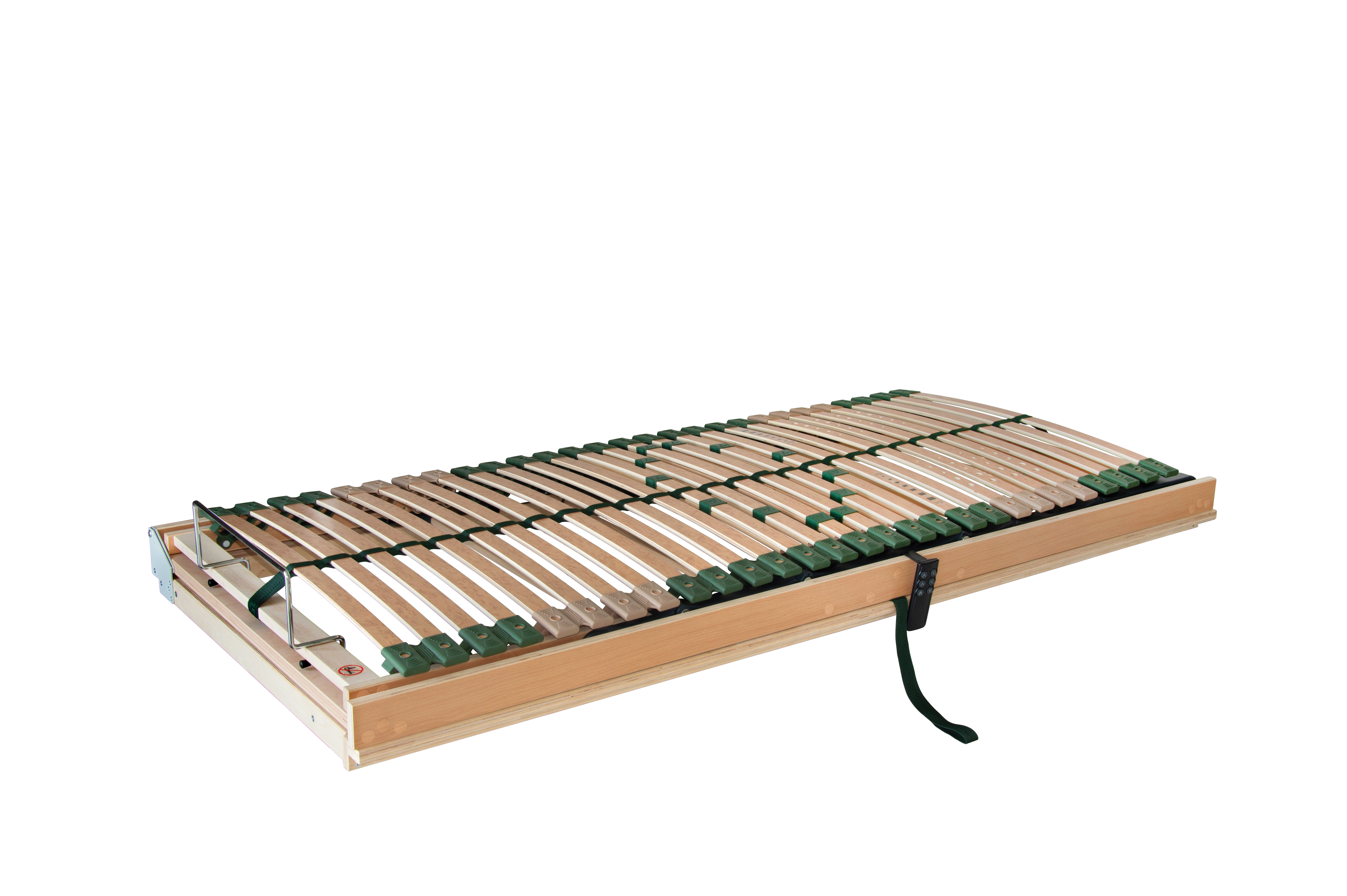 Speciálně vyvinutý motorový rošt s bočním výklopem Portoflex Motor Kombi je originálem na trhu chráněný průmyslovým vzorem pro EU. Rošt 2v1 v sobě spojuje jak maximální pohodlí při odpočinku a spánku, tak i praktičnost pro snadný přístup do úložného prostoru pod postelí. Extra ploché provedení s motorem uloženým v konstrukci rámu roštu umožňuje plné využití úložného prostoru pod lůžkem. Speciálně uložená výkyvná pouzdra zaručují vyšší nosnost a odolnost proti prudkému zatížení. Pružné lamely v 7 anatomických zónách se natáčejí a reagují na pohyb těla při spánku. Každá část těla je tak individuálně podepřena. Změkčení v ramenní oblasti je správnou oporou páteře při spánku na boku. Středový popruh zlepšuje stabilitu roštu. Posuvnými objímkami lze nastavit individuální tuhost v bederní části. Lamely opatřené folií zabraňují pronikání vlhkosti do roštu a usnadní údržbu roštu. Madlo zajistí, že matrace při polohování zůstane na svém místě. Tento rošt je dodáván s dálkovým šňůrovým ovládáním. K roštu doporučujeme poddajné matrace do hmotnosti 30 kg.